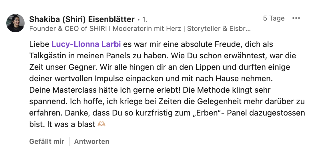 Das sagen Menschen für die oder mit denen Lucy Larbi gearbeitet hat