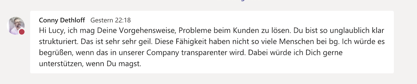 Nach mehreren Jahren praktischer Erfahrung als Unternehmensberaterin habe ich über 25 Unternehmen analysieren und beraten dürfen und dabei Erfolgsfaktoren als auch Erfolgskiller für Unternehmen und Teams identifiziert. Ergebnis meiner bisherigen Arbeit ist mein Konzept der Agilität⁺.